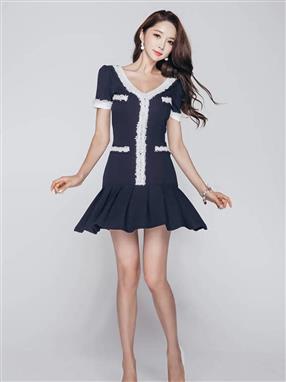 纤瘦嫩模小香风短裙秀性感锁骨